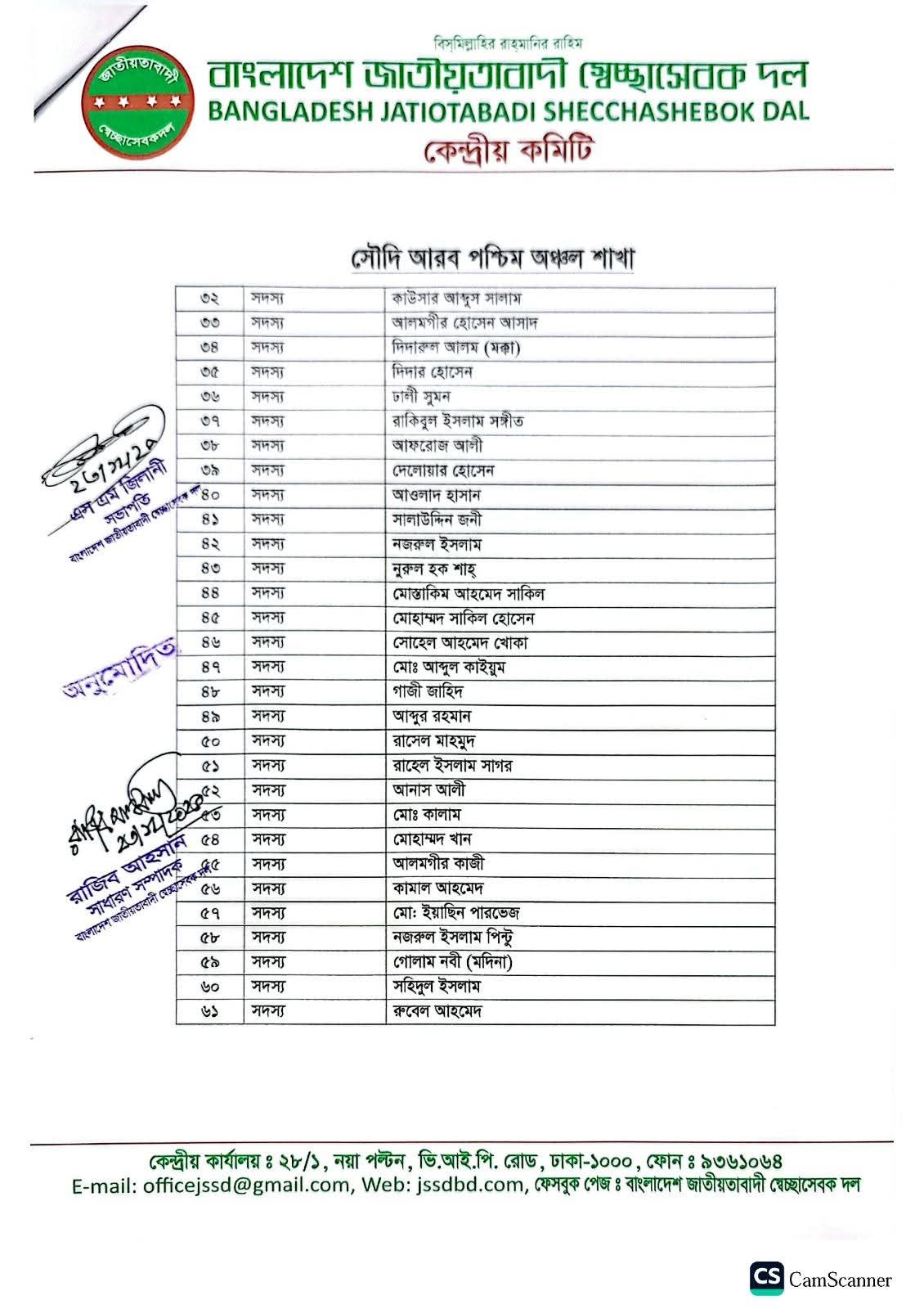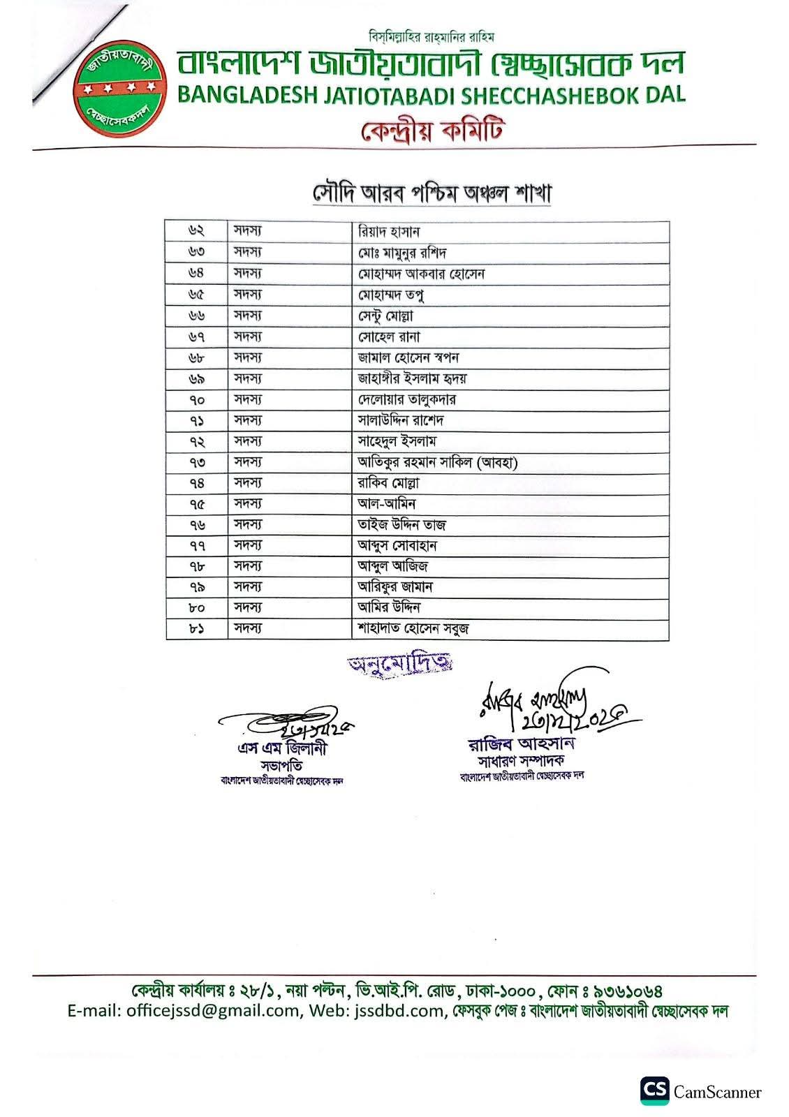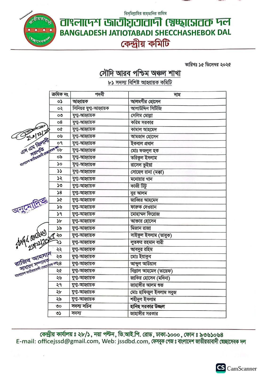 সৌদি আরব : বাংলাদেশ জাতীয়তাবাদী সেচ্ছাসেবক দলের সৌদিআরব পশ্চিমাঞ্চলের ৮১ সদস্য বিশিষ্ট আহবায়ক কমিটি সম্প্রতি কেন্দ্রীয়ভাবে অনুমোদন দেওয়া হয়েছে। এই কমিটির আহবায়ক হিসেবে মনোনীত হয়েছেন আলমগীর হোসেন এবং সদস্য সচিব হিসেবে দায়িত্ব পালন করবেন সাংবাদিক হানিছ সরকার উজ্জ্বল।